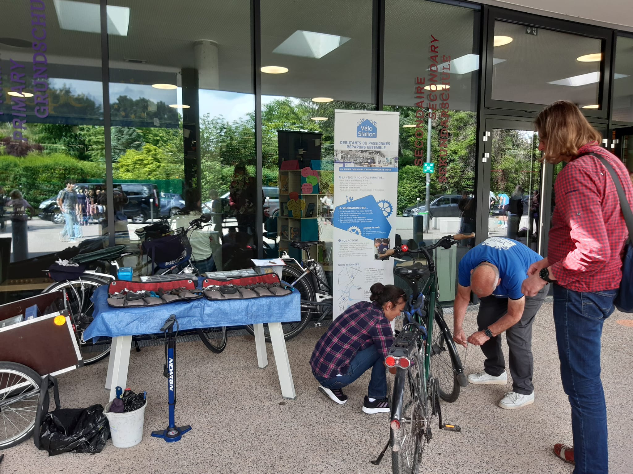 Nous avons eu la chance d’avoir un temps dégagé et l’équipe de la Vélostation nous a apporté une aide précieuse, aidant plusieurs élèves à inspecter leur vélo et à effectuer des réparations mineures.